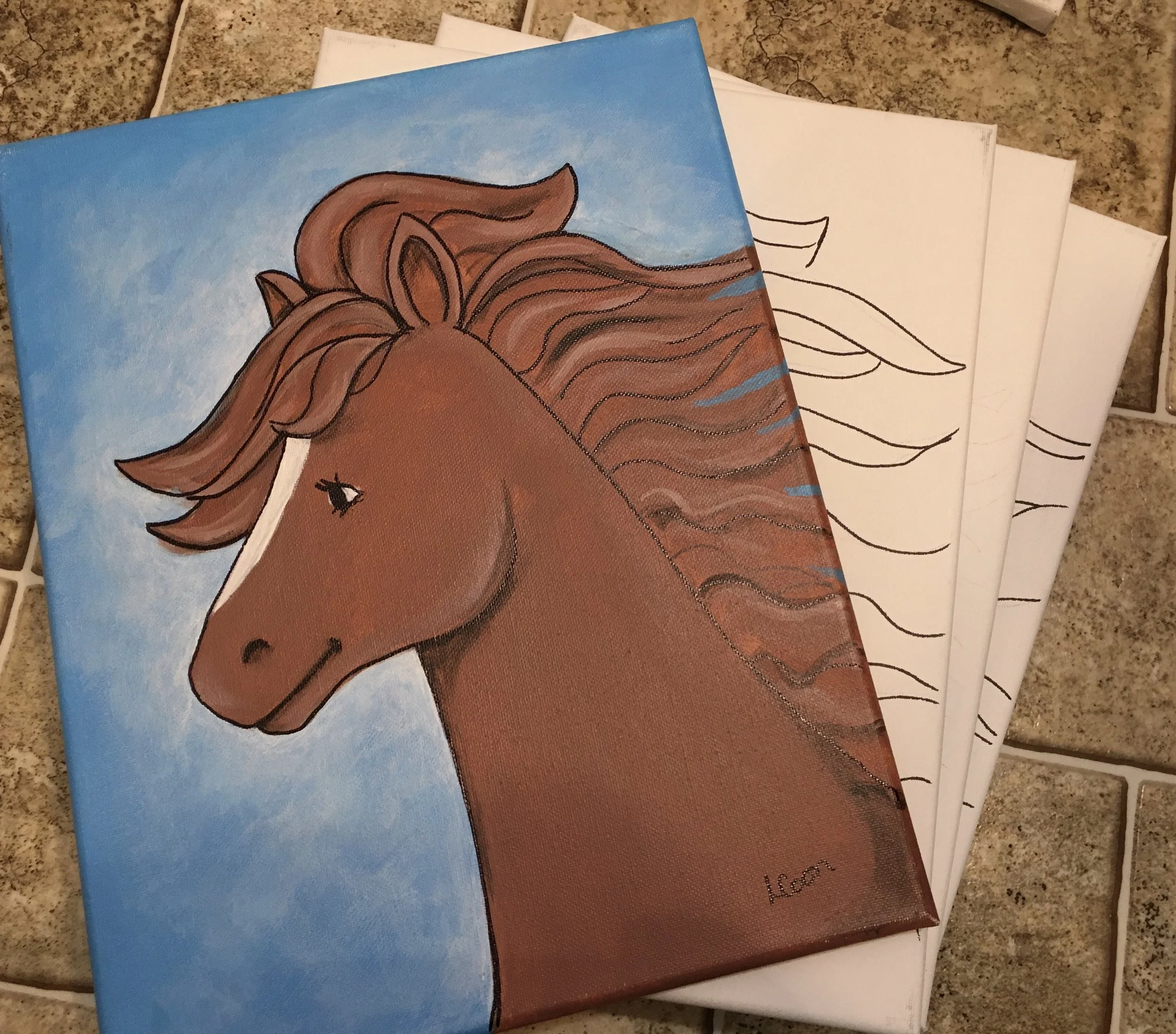 The perfect option for a beginner, these pre-drawn canvases will guide a novice in the endeavors of painting. Seasoned artists love these kits as well. Please click on the image to purchase through PayPal.